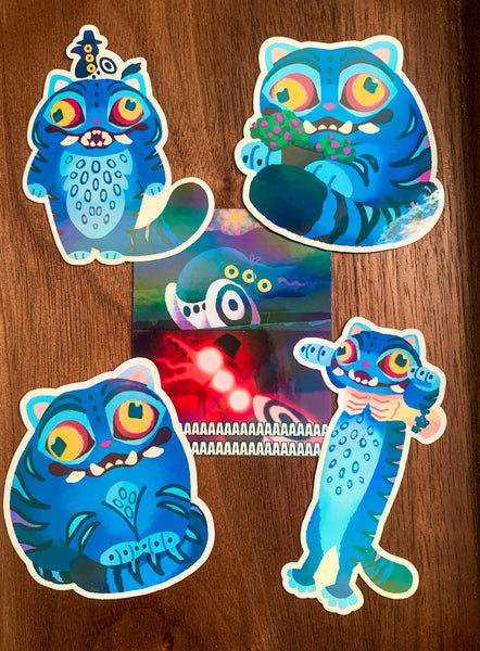 Approx 3" die-cut stickers printed on high quality vinyl and finished with a glossy holo lamination. Thick stickers are weather-resistant and won't easily tear or fall off.